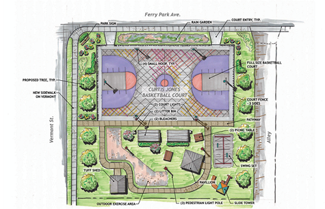 The funding from this campaign will be used to complete the park with accessible play equipment, landscaping, green stormwater infrastructure, basketball court lighting, picnic tables, court artwork, and trash receptacles. Once complete, the Curtis Jones Park will serve as a local safe place for sports and the promotion of literacy in intentionally creative ways.